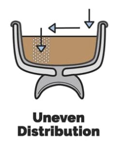آب همیشه مسیر با کمترین مقاومت را دنبال میکند. بنابراین، در نواحی از بستر قهوه که تراکم کمتری دارند، سریعتر حرکت میکند. اگر در مرحلهی دوز کردن (dosing)، توزیع (distributing) یا تمپ کردن (tamping) اشتباه کنید، چنلینگ رخ خواهد داد. وقتی این مشکل شدید باشد، حتی میتوانید آن را با چشم ببینید.