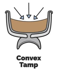 تمپرهایی با پایه محدب (convex) که انحنایی شبیه بخشی از کره دارند، باعث میشوند قهوه بیشتر به سمت لبههای بسکت (basket) هدایت شود. در آموزش باریستا به این موضوع اشاره میشود که استفاده از تمپر تخت به استخراج بالاتر و یکنواختتر اسپرسو منجر میشود.