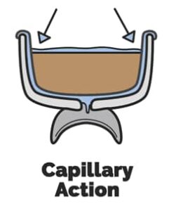 آب بهوسیلهی خاصیت مویینگی به سمت آب جذب میشود. اگر دیوارههای بسکت تمیز و خشک نشده باشند، آب از این ناحیه راحتتر عبور خواهد کرد چون قبلاً مرطوب شده است.